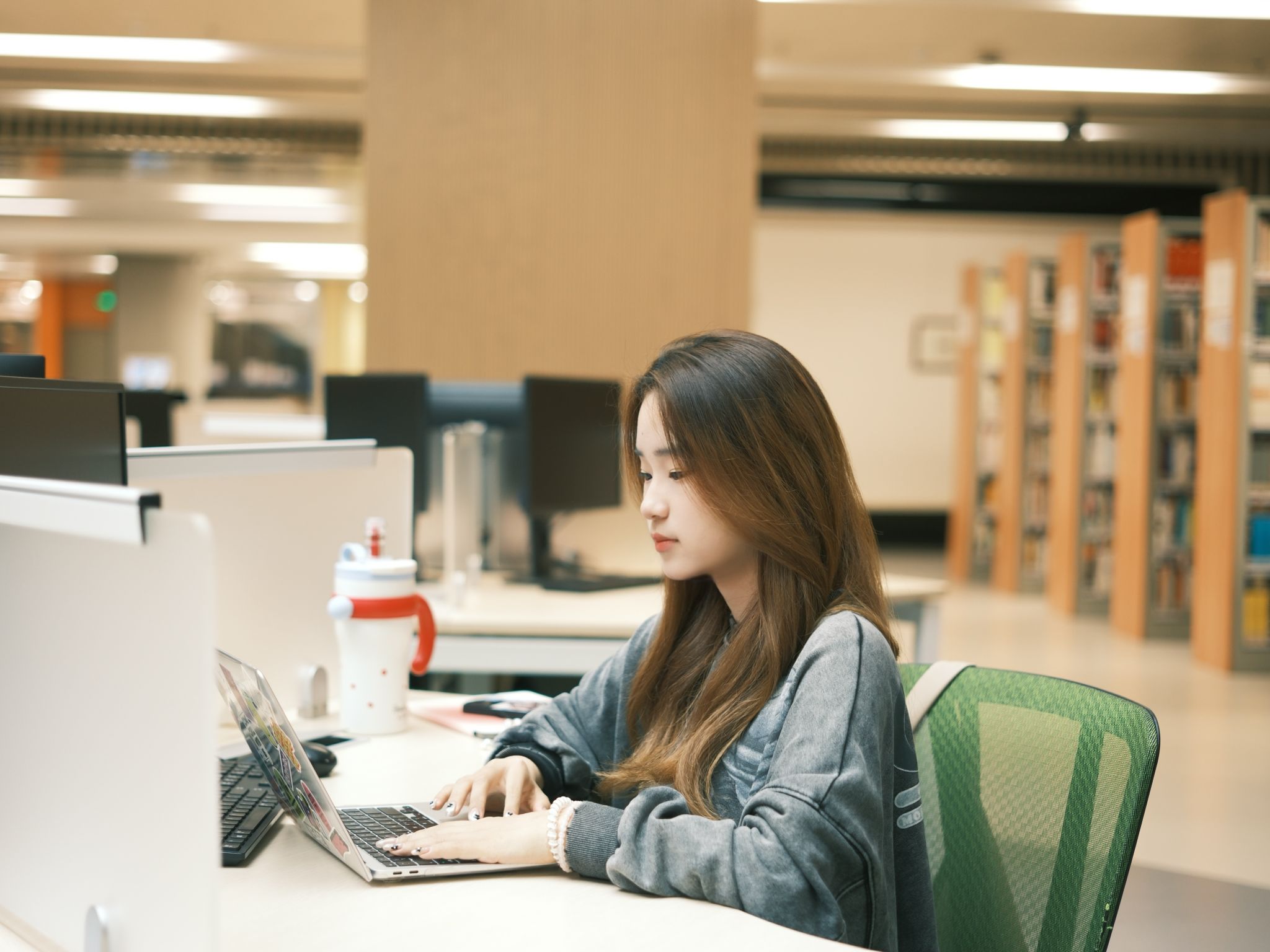 罗洁萍在北师港浸大图书馆学习