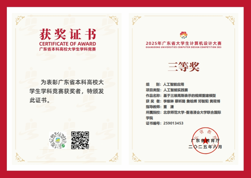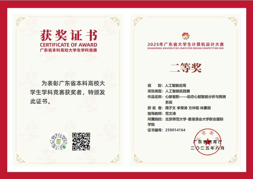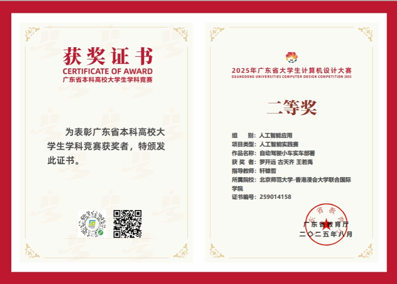 此前,BNBU理工学子在2025年广东省大学生计算机设计大赛表现优异,在大赛省级赛中共计荣获二等奖3项,三等奖3项。