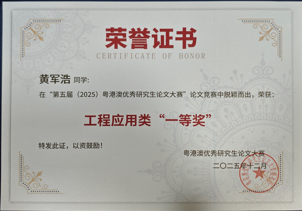 本次大赛由广州计算机学会与广州互联网协会联合主办,旨在推动粤港澳高校学术交流、科研合作与创新成果转化。赛事自11月启动以来,共收到来自粤港澳地区近20所高校的65篇投稿。经过多轮严格评审,最终评选出一等奖3名、二等奖5名。黄军浩在答辩环节表现突出,获得评审专家一致好评。
