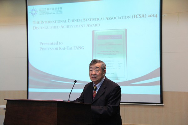 随后,方开泰教授上台分享获奖感受。他回顾了自己参与的泛华统计协会艰苦卓越的发展历程,感谢家人、朋友、同事以及UIC多年来的支持,并祝UIC的学子能青出于蓝而胜于蓝。