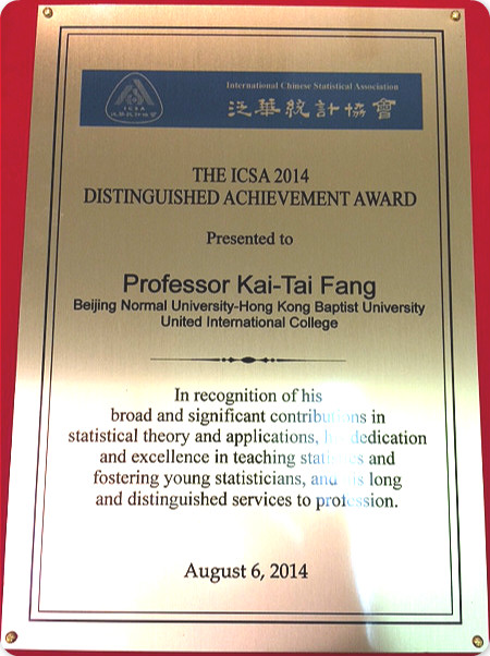 统计专业教授、统计与计算智能研究所所长方开泰荣获泛华统计协会(ICSA)颁发的2014年杰出成就奖。