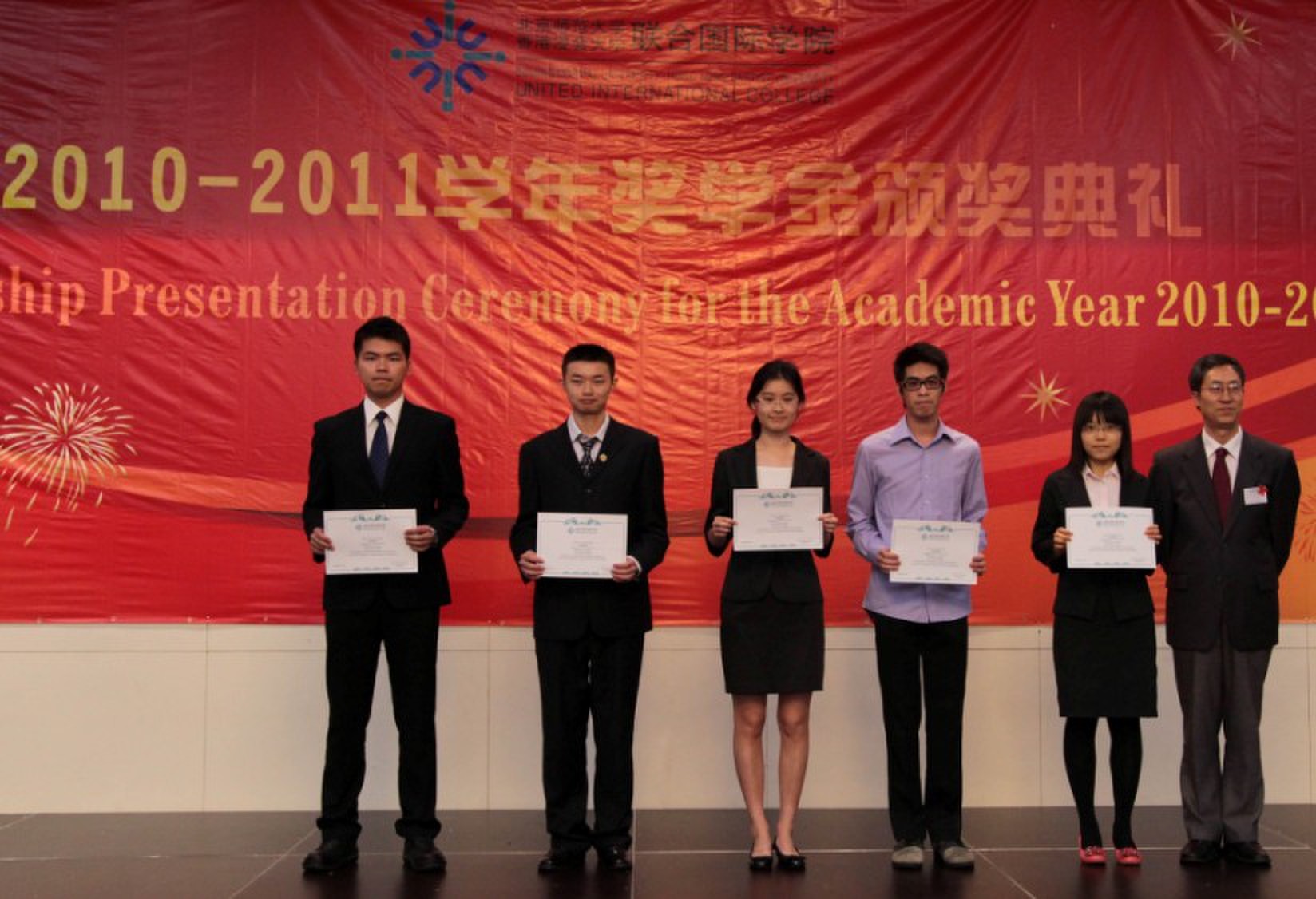 大学期间,黄山青(右二)曾获学业二等奖学金、许嘉璐全人教育奖学金和曾宪博教授奖学金