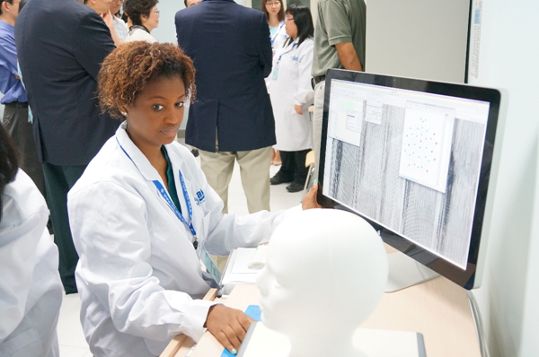 仪式结束后,嘉宾开始走访实验室,了解仪器设备的情况。每个实验室都有应用心理学专业的老师和学生向嘉宾详细介绍仪器的功能,并做相关的演示,不少嘉宾还亲自体验。记者也随同采访,多方了解这个新生事物。