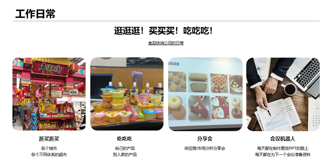 第四位分享嘉宾是2018届的叶巧瑶学姐,她毕业于香港中文大学,专业为营养、食品科学科技,现就业于徐福记国际集团。因为营养专业就业机会不是特别广泛,食品研发方向又需要较多的工作经验,平衡各方面考虑学姐最终选择了做市场研发。