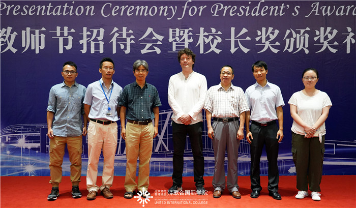 在今年的教师节庆祝活动上,黄华雄院长(左三)与理工科技学部部分教职员合影