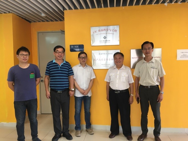珠海市食品安全协会会长黄腾邈,技术专家王卫东、陈坚等一行四人于8月6日到访北师港浸大(UIC),参观UIC食品科学与工程专业及食品安全检测中心(珠海粤港食品安全检测有限公司),并与理工科技学部副院长雷波教授及食品安全检测中心负责人辛雄博士交流。