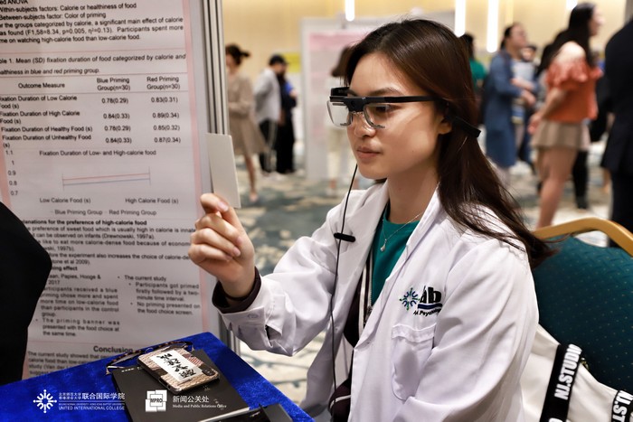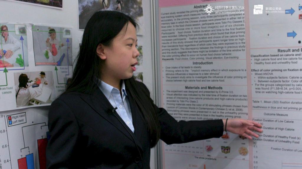 4月10日,在北师港浸大(UIC)理工科技学部一年一度的第七届学生研究成果海报展上,共展出了72个学生研究项目,涉及老年人心理健康、房价走势预测、食品安全、塑料污染、医学检测等题目,现场同学们用英语向大家讲解他们的研究,还有校内外评委进行打分。