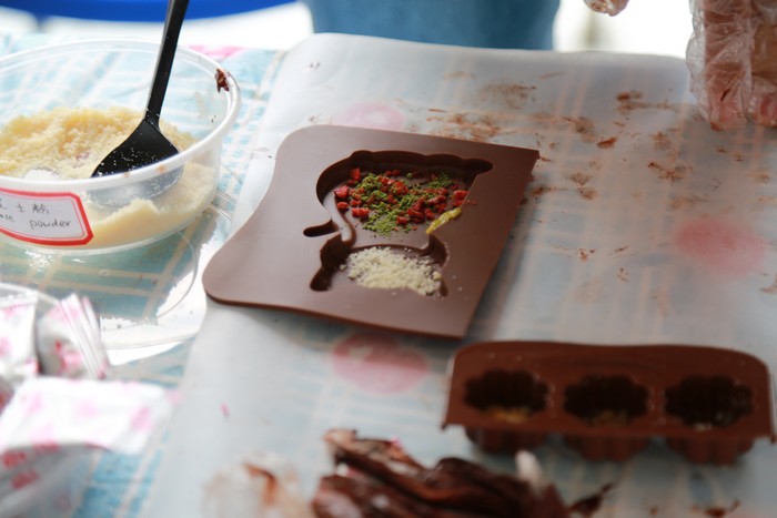 活动现场热闹非凡,香气扑鼻,FST的同学们个个化身大厨,为大家带来中式口味冰淇淋、东南亚风味玉子烧、火锅味披萨等,还有“亦真亦假”巧克力猜猜猜活动。同学们在活动现场流连忘返,吃了巧克力,来一块玉子烧解解腻,再吃个冰淇淋清凉一下。冰淇淋采用了中式材料,并让同学们边吃边猜。“红茶?”“普洱?”各种新奇的口味让同学们赞叹不已。