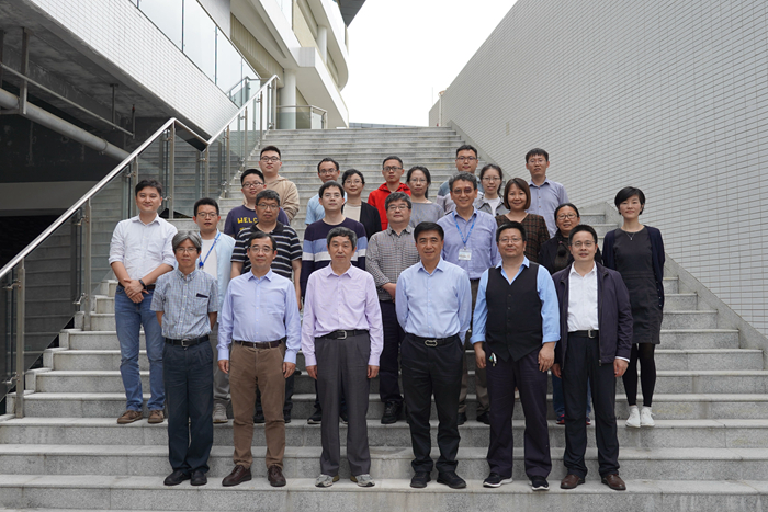 中国科学院院士、北师港浸大校长汤涛教授(一排右三),北师港浸大副校长(学术)、数学研究中心执行主任黄华雄教授(一排左一)和部分参会人员合影