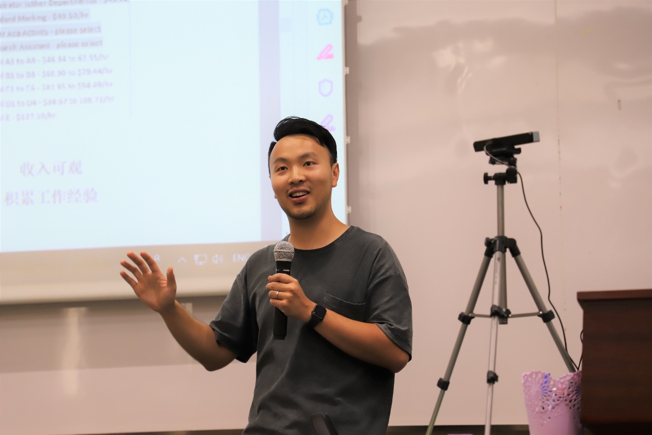 罗嘉锵学长则侧重介绍了自己的留学打工经验以及旅游生活。学长主要以自己在墨尔本的打工经历以及遇到的问题和大家分享生活经验,比如最好对于打工地点进行一个全面的了解,租住房子不要轻易网上的照片,最好自己亲自去现场了解。在生活方式方面,他介绍了墨尔本的人文社科及一些旅游景点。