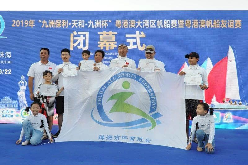 邬可夫(后排左二)获2019年“九洲杯”粤港澳大湾区帆船赛暨粤港澳帆船友谊赛第一名
