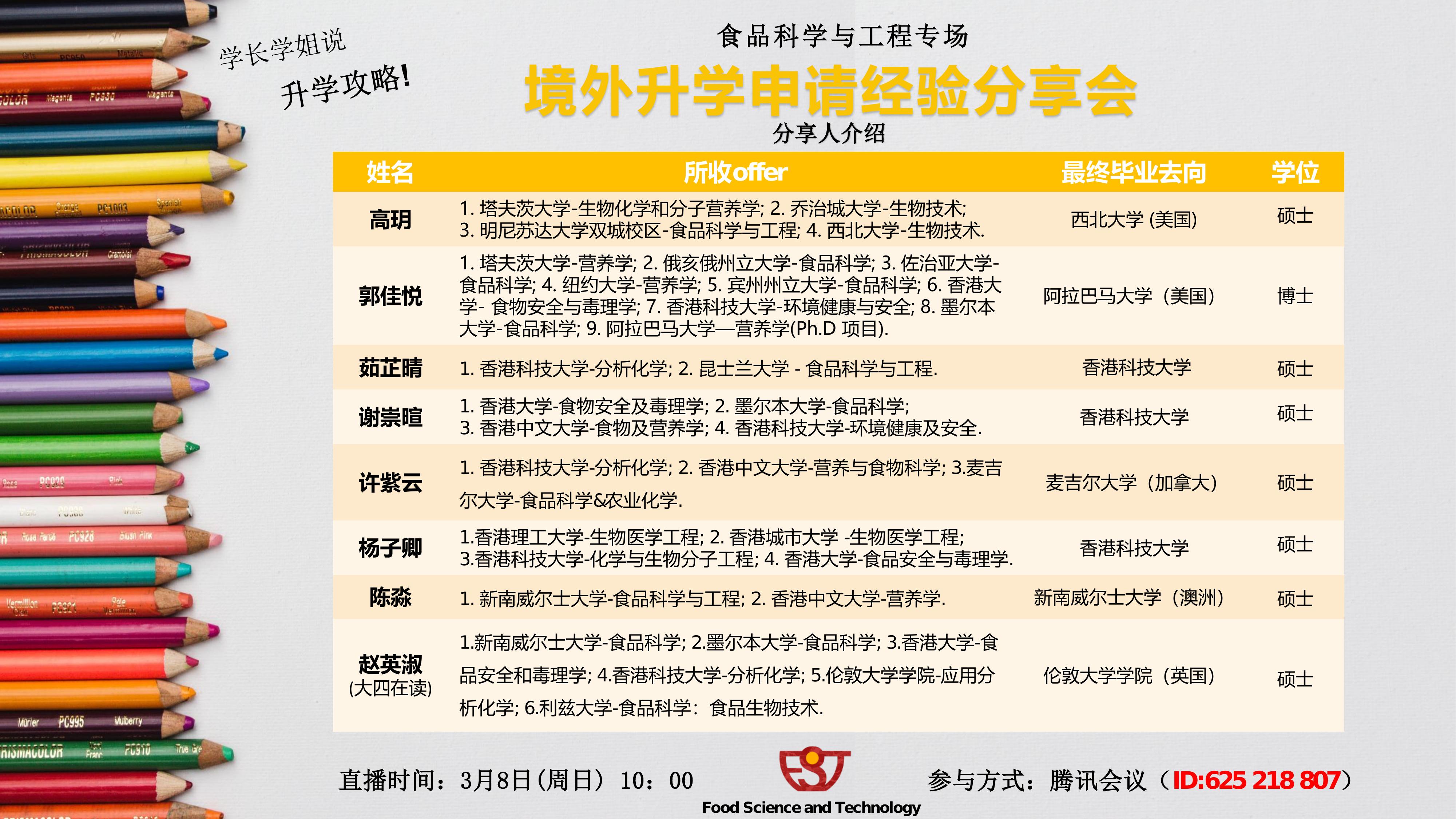 食品科学校友师生“云聚”经验分享会之境外升学申请经验分享会