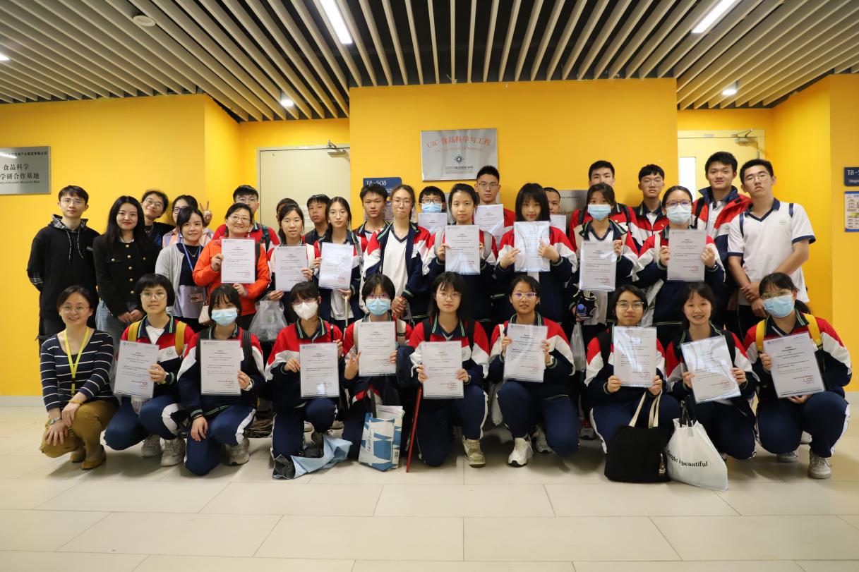 研学活动结束后,老师给每一位同学颁发了证书并在实验室前完成了合照。此次活动让同学们对食品专业有了新的认识,收获满满。