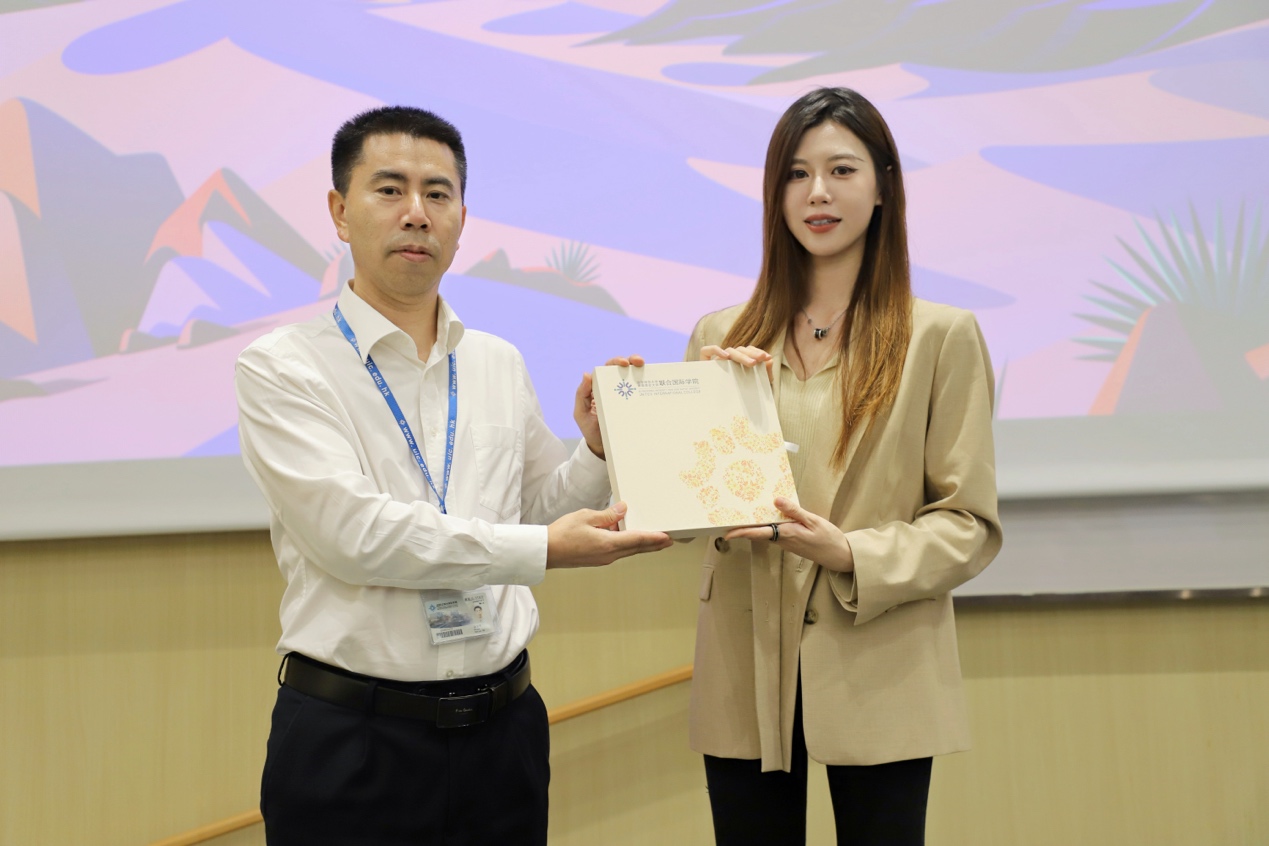 讲座结束后,生命科学系系主任徐宝军教授向郭博士赠送了UIC纪念品,为此次学术交流画上了圆满的句号。本次讲座不仅加深了与会者对淀粉包合物与抗性淀粉关系的理解,同时为理工科技学院的学生提供了难得的学术启示。