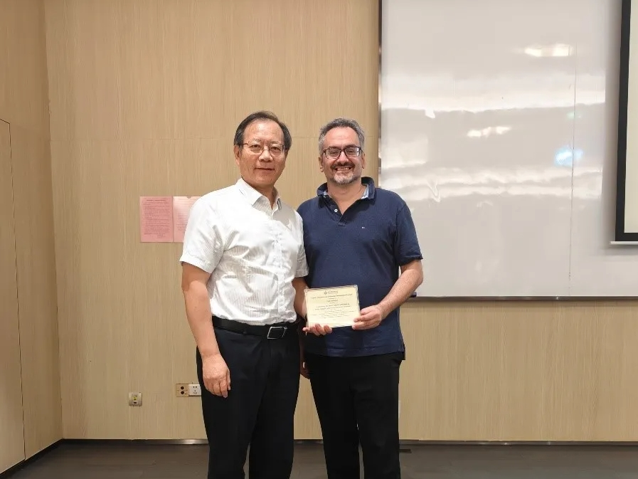 讲座结束后,北师港浸大副校长(研究和拓展)潘建新教授向Guindani教授赠送了纪念品并表示衷心感谢,随后Guindani教授与周华教授以及理工科技学院部分老师进行亲切合影留念。