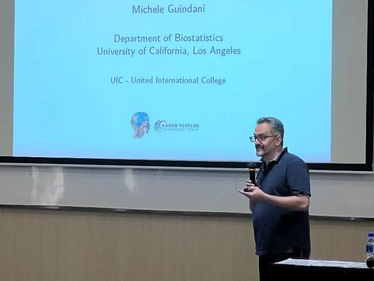 Michele Guindani教授首先为师生们带来了题为《Connecting the Dots: Statistical Models in Brain Imaging and Brain Networks Dynamics》的前沿学术讲座,该讲座主要介绍了贝叶斯统计方法在脑成像领域中的创新应用。