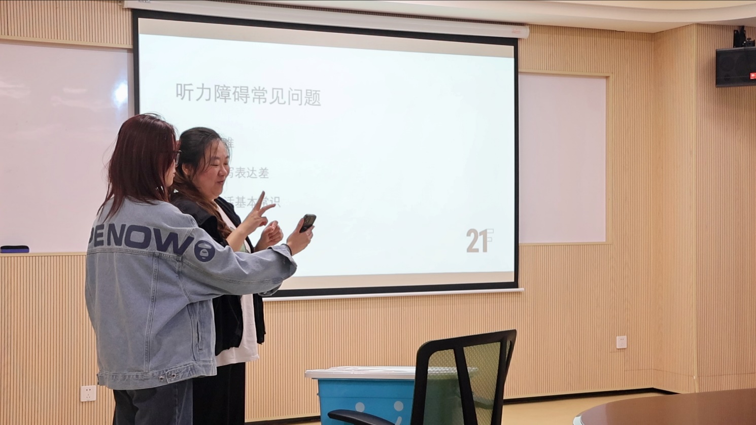 活动中,程忠莉与唐奇乐共同登台,真诚分享了在工作中面临的挑战和解决经验。唐奇乐提到,目前手语体系仍然存在一些局限性,例如不同地区不同场合的手语差异,很大程度上导致其广泛适用受到阻碍。而程忠莉在分享的过程中坚持向我们同步展示手语,不仅让大家更加直观地感受到手语的魅力,还通过有趣的“猜手语”互动环节,调动了现场气氛。她们在工作中相互理解和支持的良性互动,不仅提升了彼此的信任与合作效率,还为构建和谐、包容的职场环境树立了榜样。
