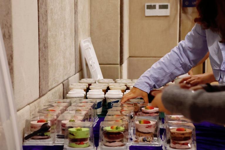 活动现场特别准备了精美的茶歇,每一件茶歇及其包装都由听障人士和特殊教育学校患病儿童参与制作,凝聚了她们的心意与创意。值得一提的是,挂耳咖啡的包装印着她们亲手书写的温暖文字,每一笔都蕴含她们的思想传递出独特的温暖和力量。