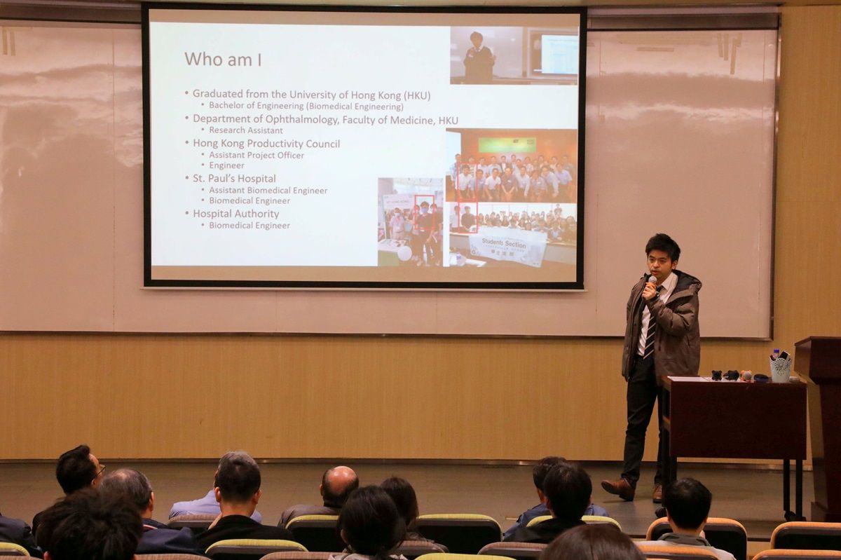 IET香港分会电子及通信工程部主席Calvin WONG介绍了生物工程专业毕业生的五种基本职业发展路径,并结合自身在医院管理局的工作经历,强调了持续学习和考取相关证书的重要性。