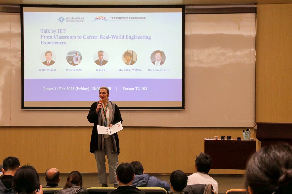 下午,代表团为UIC学生带来了一场题为“从课堂到职场:工程师实战经验分享”的职业发展讲座,讲座由Katharina YU博士主持。IET香港分会委员会委员Ben LI工程师首先介绍了IET、IET的职能、IET香港分会以及如何成为一名注册工程师。随后,五位来自不同领域的工程师轮流上台分享他们的职业发展经验和见解。