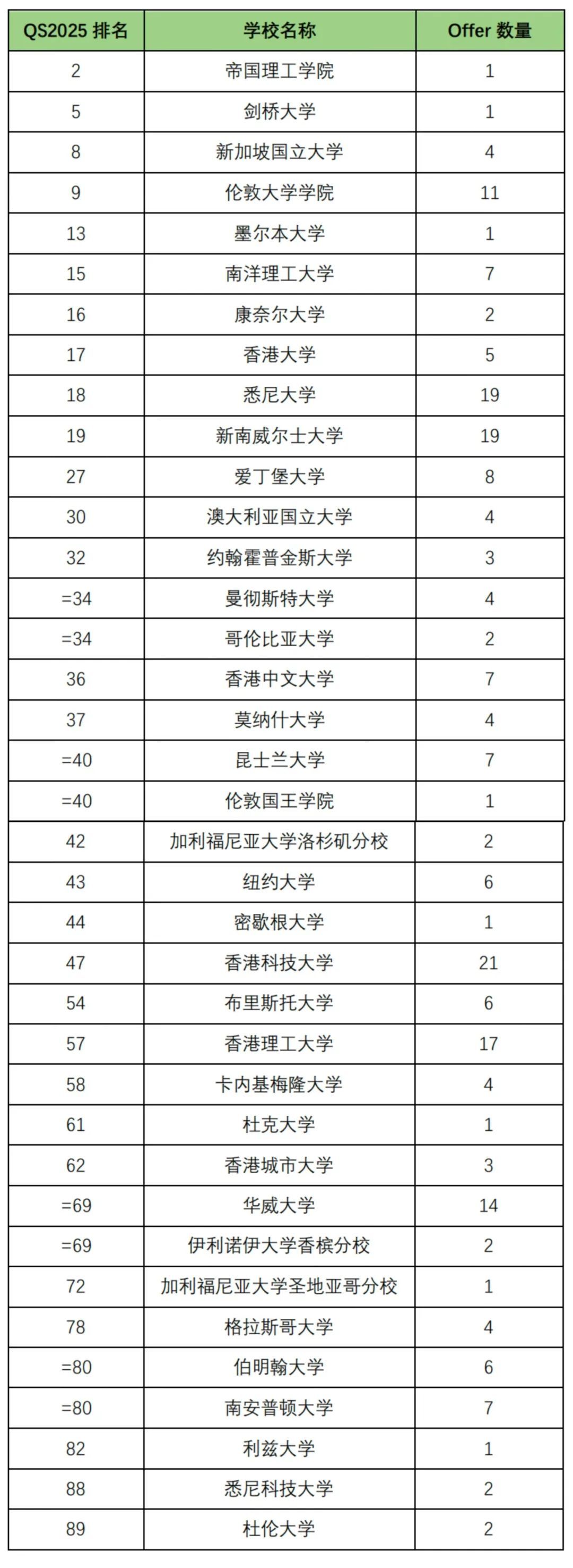 BNBU计算机科学与技术专业2025届准毕业生共计139人,截至2025年6月22日,在已经落实毕业去向的毕业生中,89%的学生选择升学。在选择升学的学生中,54%的同学被2025QS世界大学排名前30高校录取,67%的同学被排名前50高校录取,85%的同学被排名前100高校录取。