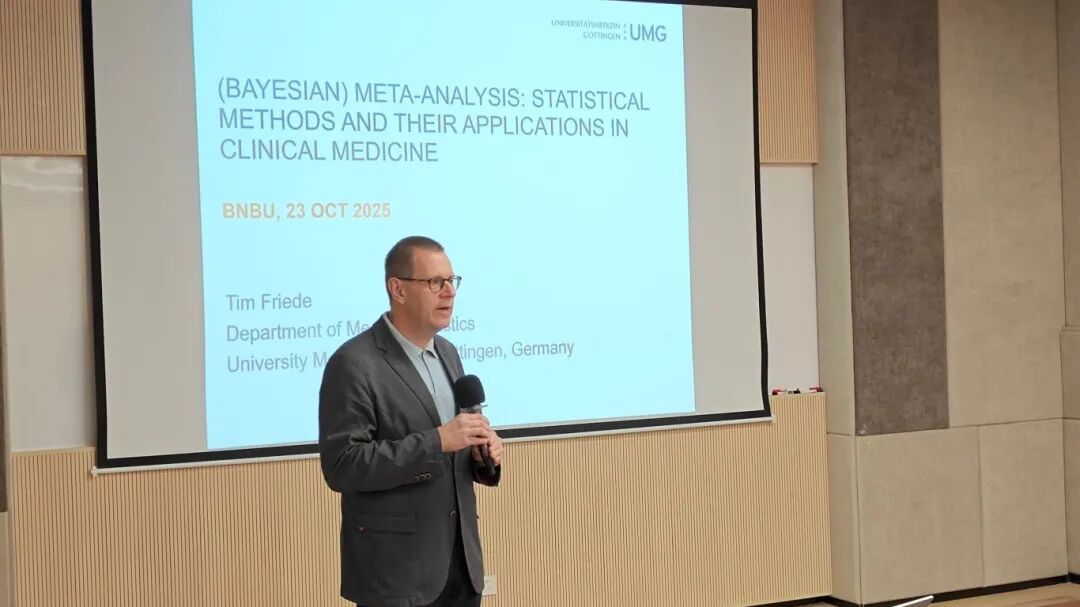 Tim Friede教授在德国海德堡大学医学院获得博士学位,自2010年起担任德国哥廷根大学医学中心生物统计学教授,是《医学统计学》、《生物计量学杂志》、《欧洲心力衰竭杂志》和《ESC心力衰竭》的副主编,曾在国际生物计量学会担任多项职务,是欧洲数据科学协会和国际临床生物统计学学会的董事会成员,德国心血管研究中心、德国儿童与青少年健康中心以及下萨克森州人工智能与医学因果方法中心的首席研究员。Friede教授在同行评审期刊上发表了430多篇关于统计学方法及应用的论文。此次为Friede教授首次到访我校。