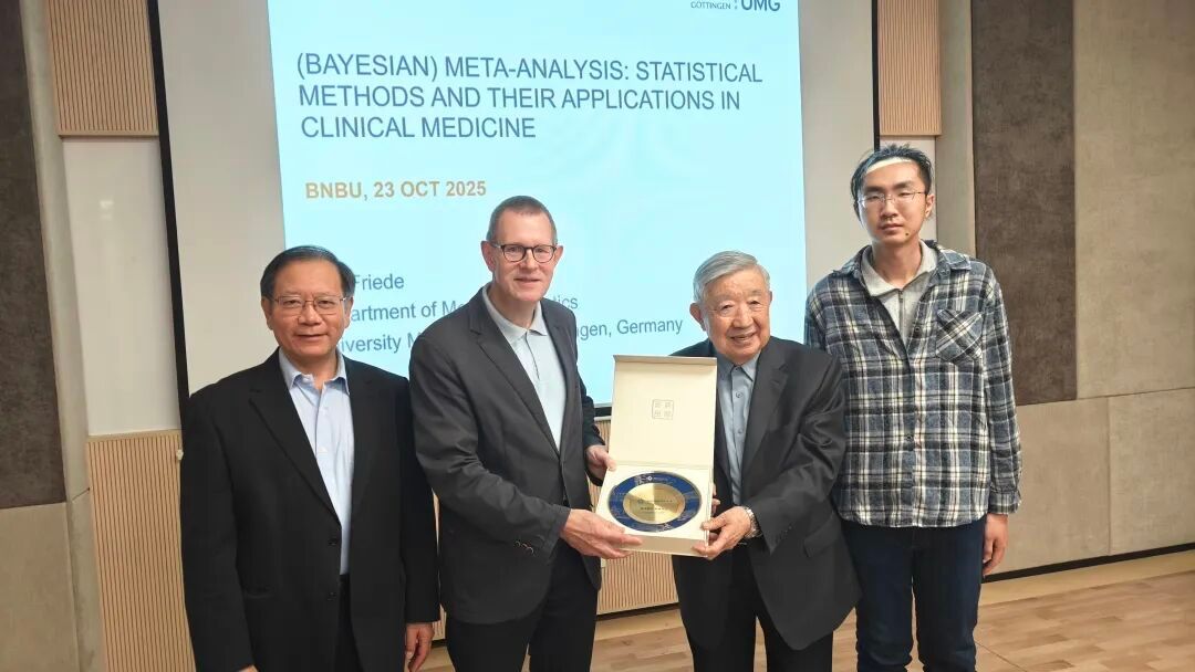 值得一提的是,随同Friede教授此次来访的还有他目前哥廷根大学的博士生徐龙昊。徐龙昊同学曾于2020年毕业于我校统计学专业,本科期间在方开泰教授、潘建新教授和贺平博士的指导下在Statistical Papers、Communications in Statistics - Theory and Methods等期刊上发表论文多篇。本科毕业后他于2021年获得曼彻斯特大学统计学硕士学位,并且获得英国皇家统计学会(Graduate Statistician)奖项。2022年徐龙昊获得德国哥廷根大学医学统计学博士全额奖学金,目前是德国哥廷根大学医学中心医学统计系的博士生和研究助理。此次回到母校,徐龙昊也倍感亲切,并衷心祝福统计学专业培养出越来越多国际化人才。
