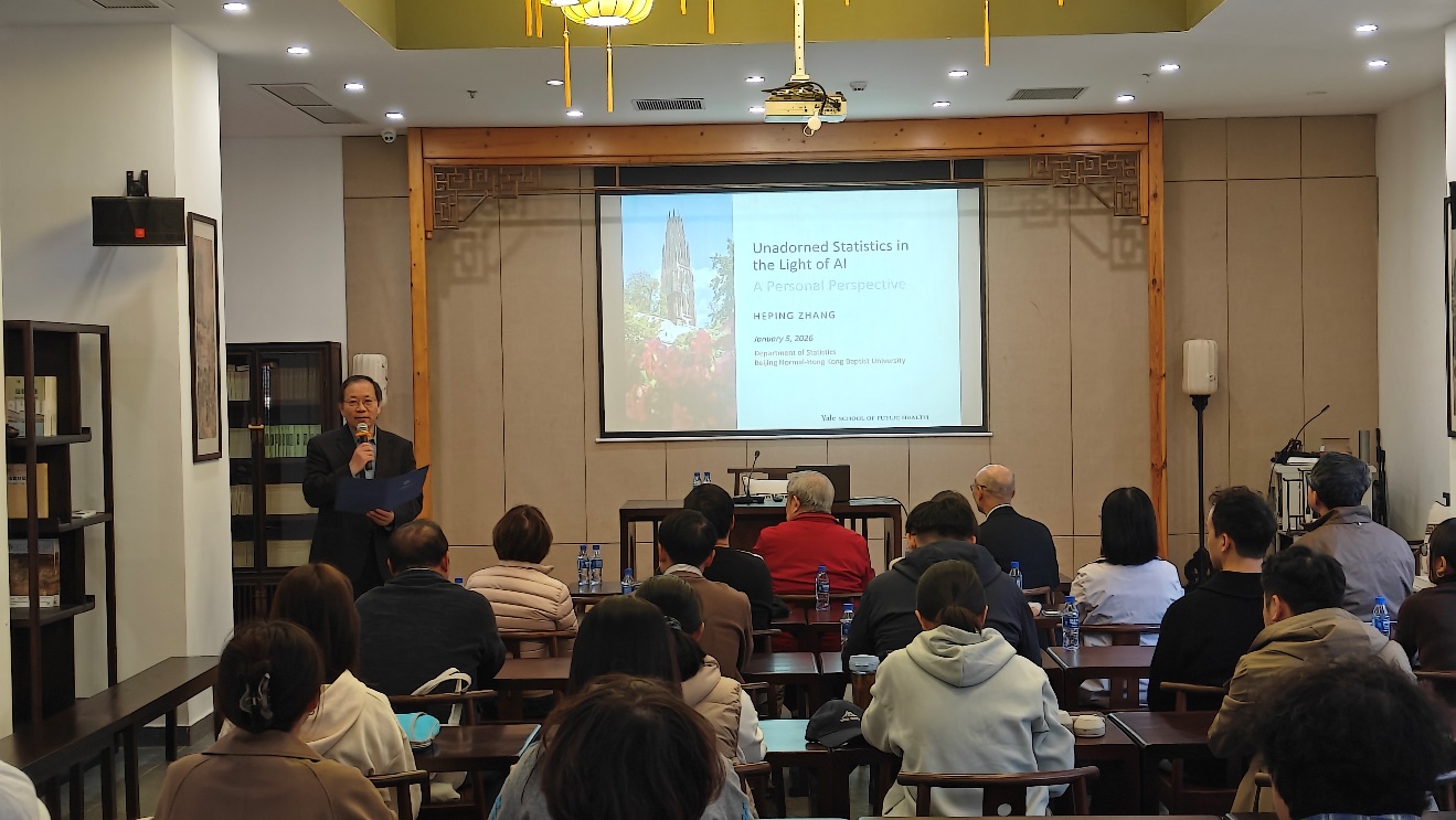 1月5日,理工科技学院明理大讲坛第二讲开讲!应北师港浸大副校长(研究和拓展)、广东省数据科学与技术交叉应用重点实验室主任、理工科技学院统计与数据科学系讲座教授潘建新邀请,耶鲁大学张和平教授作为此次开讲嘉宾到访我校,为理工科技学院师生带来题为“AI视角下的朴素统计学”的专题报告。