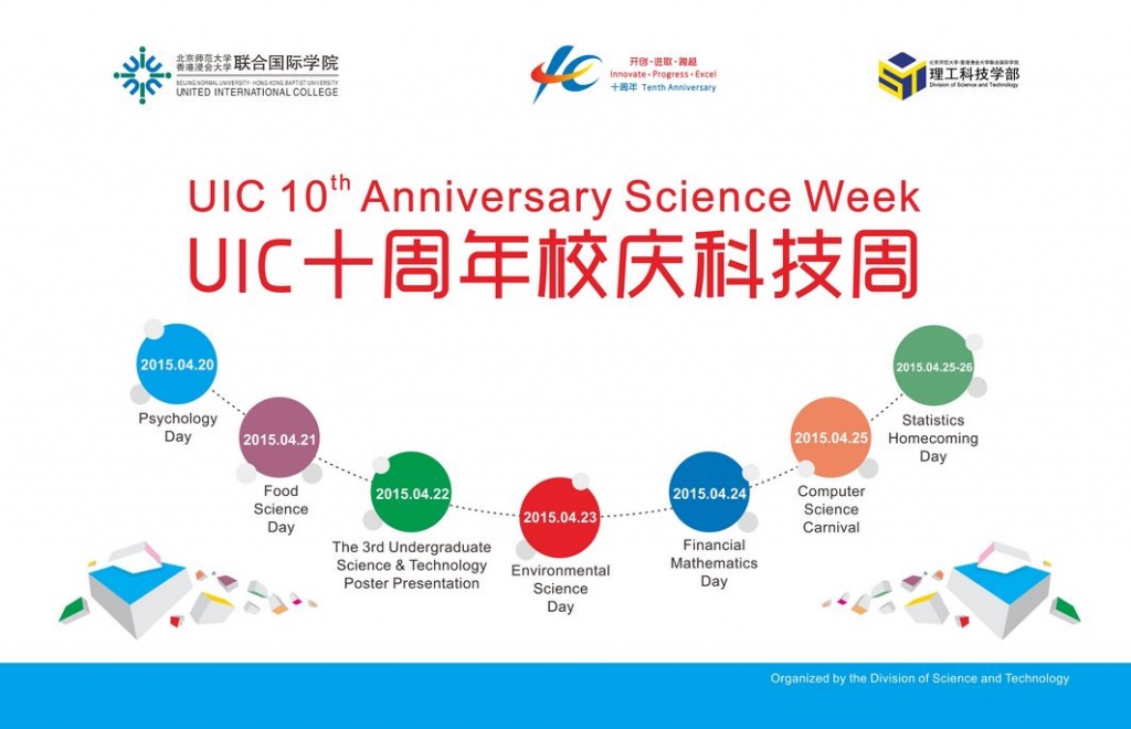 为庆祝UIC建校十周年,回顾办学成果,展现学科魅力,理工科技学部将于2015年4月20日至2015年4月26日举办“UIC十周年校庆科技周“系列活动。活动日程安排如下: