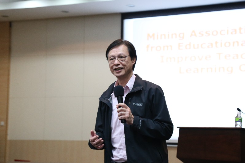UIC理工科技学部梁灏锵教授讲解了“用教育数据的关联规则挖掘来提高教学和学习成果”和“基于知识本体的图像检索框架”两个主题的研究内容。