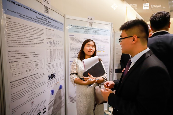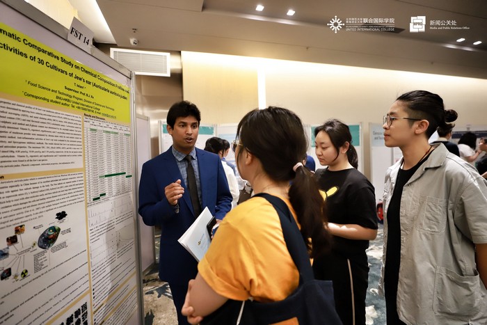 4月10日,在北师港浸大(UIC)理工科技学部一年一度的第七届学生研究成果海报展上,共展出了72个学生研究项目,涉及老年人心理健康、房价走势预测、食品安全、塑料污染、医学检测等题目,现场同学们用英语向大家讲解他们的研究,还有校内外评委进行打分。