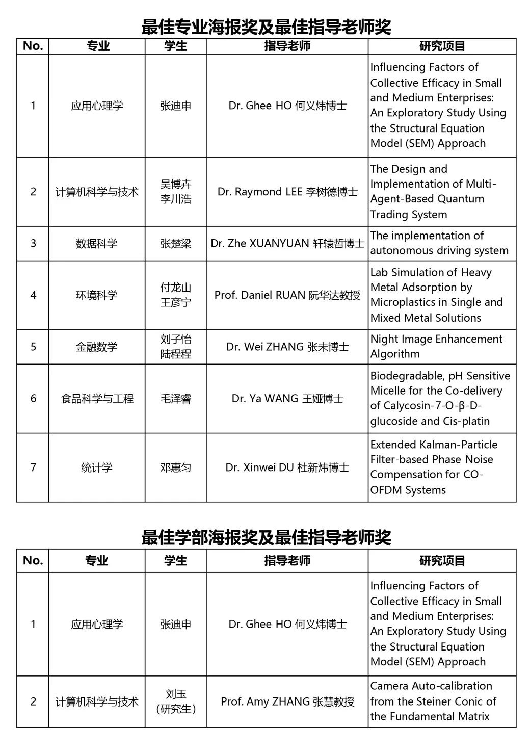 本次DST海报展设有“最佳学部海报奖”“最佳专业海报奖”“最佳指导老师奖”等奖项,获奖名单如下: