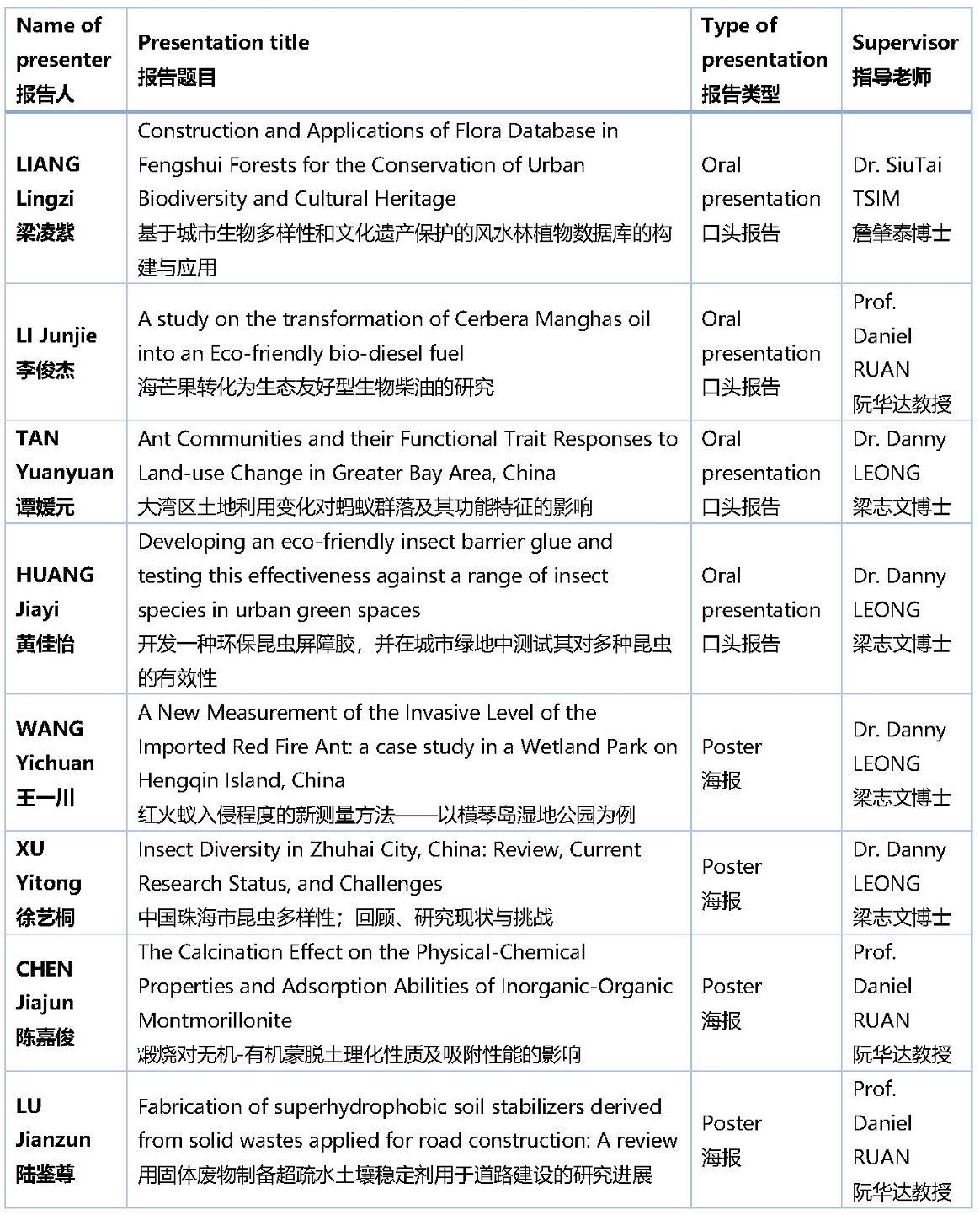 此次研讨会由澳门圣若瑟大学(USJ)主办,旨在汇集来自学术界、工业界和政府部门的研究人员、专家和实践者,分享他们的最新研究成果,并讨论环境科学和可持续技术领域的最新发展。研讨会包括主题演讲、科学口头报告和行业报告等。UIC环境科学专业师生代表作了精彩的口头报告和海报展示。