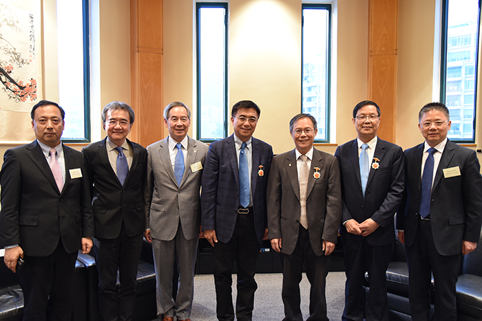 中央人民政府驻香港联络办公室教育科技部副部长蒋建湘向汤涛校长颁发纪念章