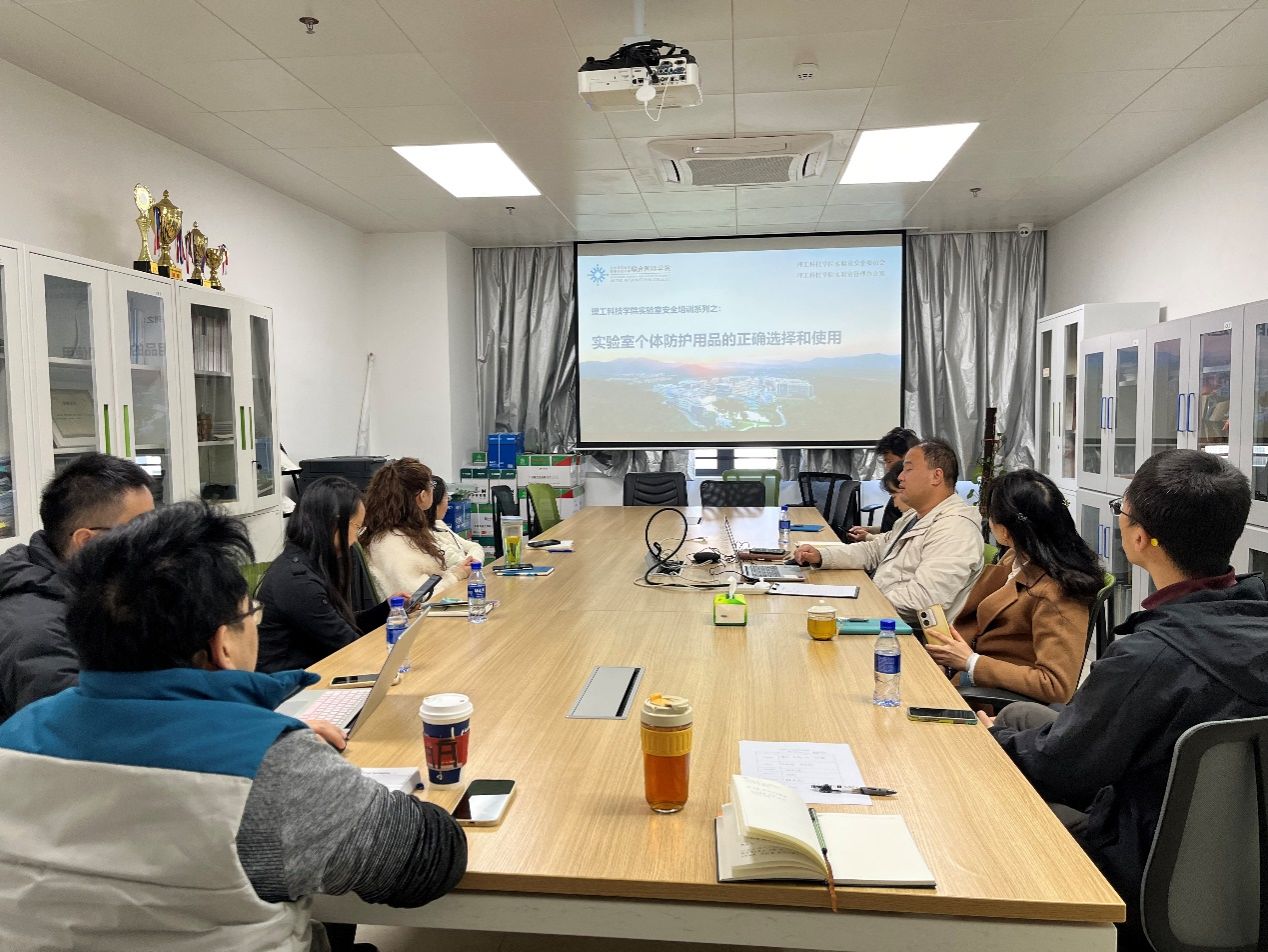 会上大家集中学习了实验室个体防护的重要性、分类、正确选择与使用。