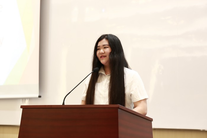 李林雨同学分享了他们小组的比赛经验,她表示,这两次比赛从培训到参赛都是非常宝贵的经验,首先是和不同专 业的同学组建团队,根据组员的实力选择适合的竞赛题目,在比赛过程中,组员的数学计算能力、编程能力和编写论文能力都得到了很大程度的提高。在比赛中获得 这样的佳绩,她认为除了专业技能外,最重要的是不到最后一刻不放弃的毅力。她还特别感谢了贺平博士等指导老师:“参加美赛的时候刚好是农历新年前四天,学 校及周边已经没有餐馆营业,老师们给我们买了很多食物过来,在当时来说,既是物质食粮也是精神食粮,给了我们很大的支持!”
