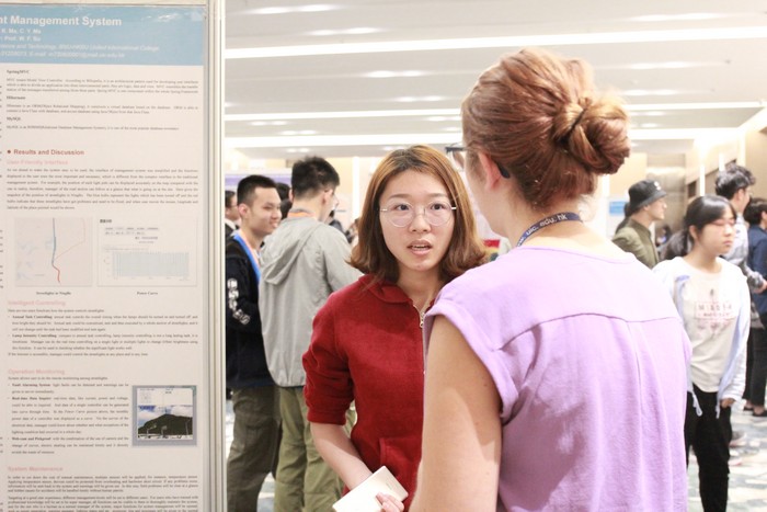 Students’ projects focused on both the real and the hypothetical as well as pilot projects being conducted in China, like the ‘Intelligent Lighting System for Smart City’ project, which featured postgraduate student Li Shuxin. This was her second time participating in the Annual Poster Presentation, first as an undergraduate student at UIC, and now returning to do postgraduate research. Shuxin detailed that their project was focused on an intelligent street light system currently operating on a trial basis in Ningbo, China. Aims of the project are to not only reduce the waste of energy, but also be able to detect other problems like broken lights, cable stealing and more.