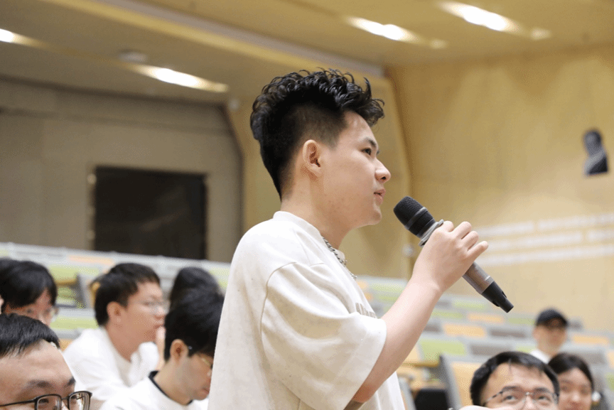 师生问答环节气氛热烈,同学们纷纷踊跃提问。