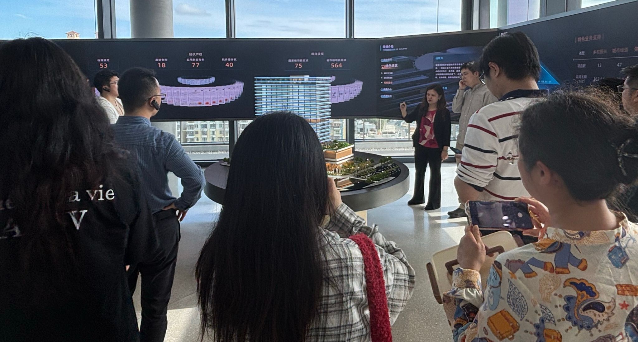 师生一行受到珠海市规划设计研究院工程师的热情接待,师生们依次参观了海绵城市、废料回用及清水混凝土、空中花园、无人机机场及共享社区等绿色设施以及屋顶花园的大气、光伏、雨水回用设施,领略到绿色建筑的创新理念和对自然资源的高效利用;通过工程师们的详细讲解,学生们更直观地了解和学习到绿色建筑的优点。