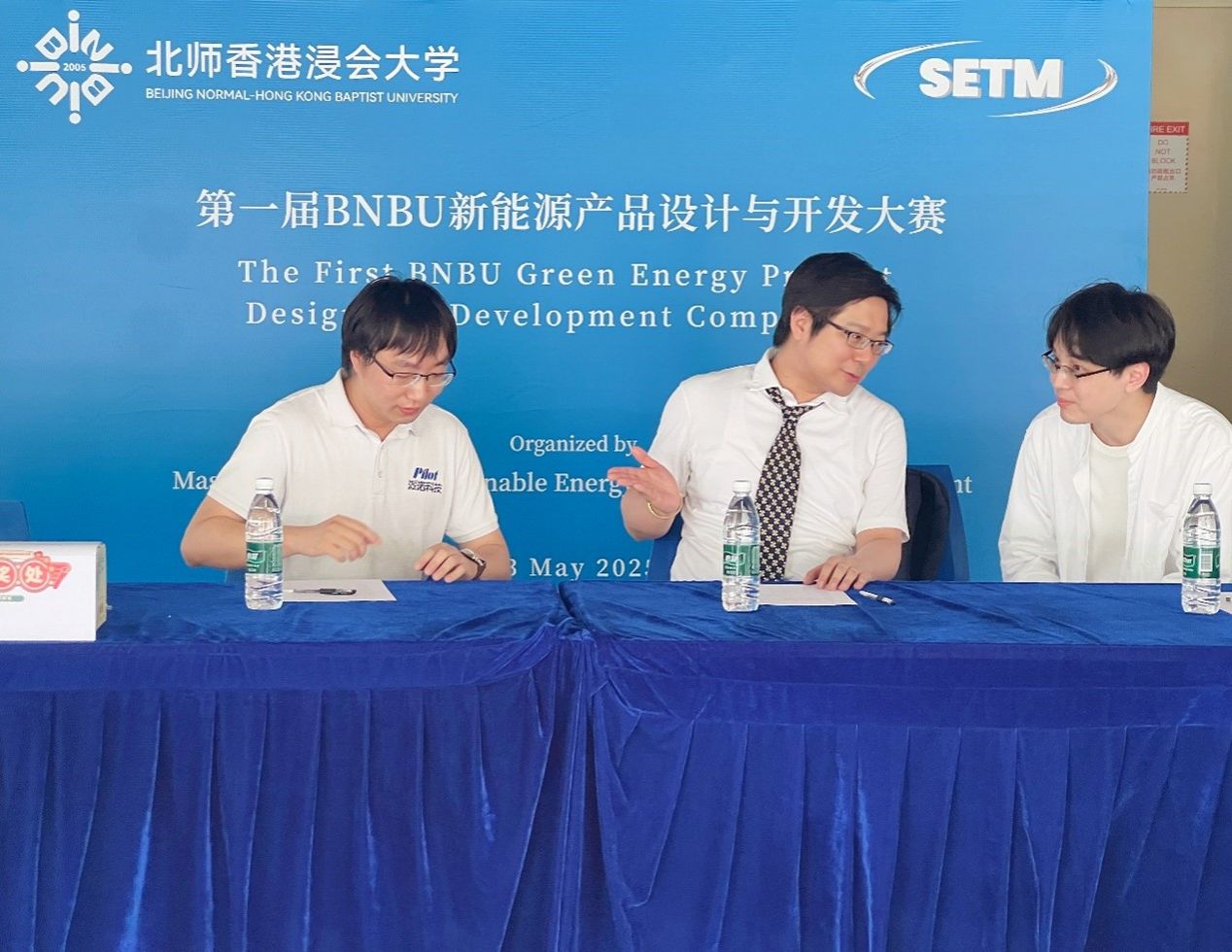 2025年5月23日初夏的暖阳下,北师香港浸会大学(BNBU)校园的户外开放空间涌动着一股蓬勃的创新活力。由BNBU可持续能源技术与管理硕士课程(SETM)精心打造的首届“智能科技,绿色未来”新能源产品设计与开发大赛在此间盛大举行。大赛不仅汇聚了校园的智慧菁英,更荣幸邀请到香港浸会大学校长苏树江教授、朱福荣教授等多位重量级专家亲临助阵,为这场绿色科技盛宴增添了厚重的学术底蕴。现场气氛热烈,吸引逾150名师生驻足围观,共同见证了创新思维与绿色理念的精彩碰撞。