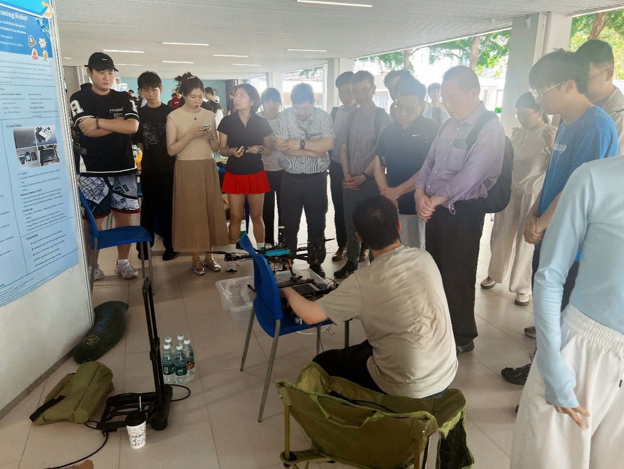 尤为引人注目的是,香港浸会大学校长苏树江教授、朱福荣教授等专家亲临现场,观摩了多组作品的展示,并与学生深入交流。 他们饶有兴致地倾听团队讲解,细致询问技术细节,对学子们展现的扎实学识、创新思维及绿色能源洞见给予高度评价。赛后,专家们更针对技术优化、性能提升等关键环节,提出了极具前瞻性和实操性的建议,为青年创客们指明了精进方向。