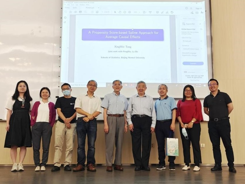 2021年4 月1日,应UIC理工科技学部及统计与计算智能研究所的邀请,北京师范大学数理统计系主任童行伟教授为UIC师生带来了主题为“基于平均因果效应的以倾向得分为基础的样条光滑方法”的讲座,向UIC师生介绍基于当今国际因果推断的存在问题分析所提出的因果推断优化模型,以及该模型在精准医疗上的应用。