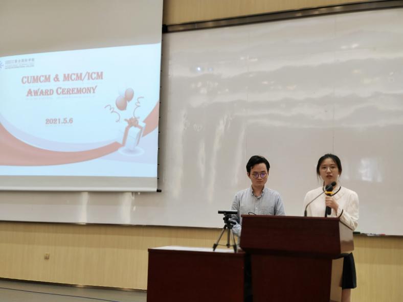 颁奖嘉宾为2020年国赛和2021年美赛的获奖队伍颁发荣誉证书,获奖学生代表还分享了比赛经验及获奖感言。