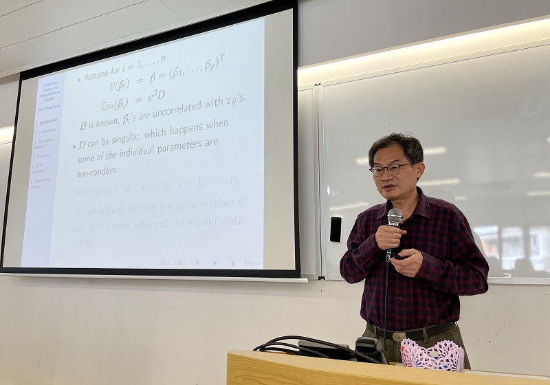 2021年11月12日,应UIC理工科技学部及统计与计算智能研究所的邀请,上海师范大学岳荣先教授为UIC师生带来了主题为“混合效应模型的G-优化设计”的讲座。岳教授讲述了如何在G-优化的准则下设计混合效应模型,介绍了CSO算法,并基于此算法生成了线性混合模型的G-最优设计。