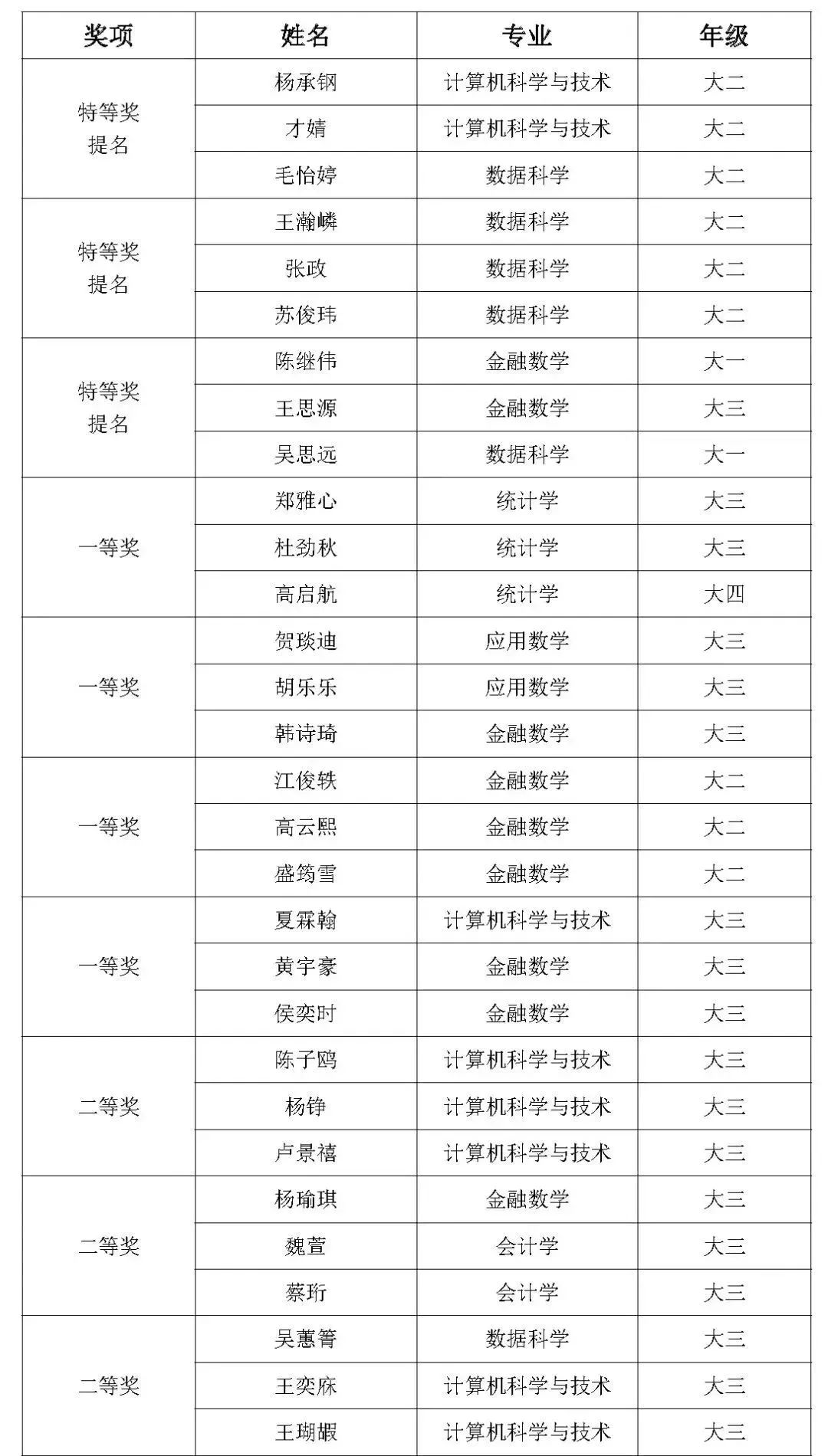 美赛获奖名单