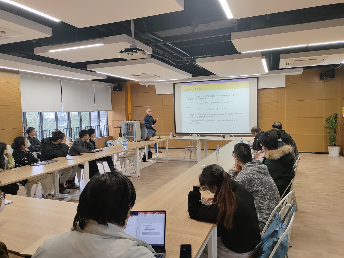 2023年12月19日,美国加州大学尔湾分校统计系南斌教授应北师港浸大(UIC)理工科技学院、广东省数据科学与技术交叉应用重点实验室、统计与计算智能研究所的邀请到访UIC,为我校师生带来题为“包含终结事件的纵向数据二元时变系数模型”的学术讲座。