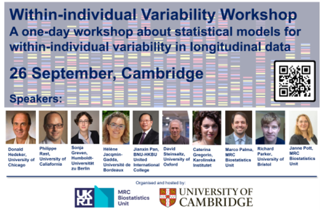 2024年9月26日,剑桥大学生物统计中心(MRC Biostatistics Unit, University of Cambridge)主办的“Within-individual Variability Workshop”在剑桥大学Pitt Building举行。此次研讨会聚焦于心血管疾病风险因素统计方法研究的最新进展,特别是生物指标个体波动率对疾病的数学定量分析影响,吸引了线上线下120余位世界各地的生物统计、流行病学和数据分析等领域的学者参加。